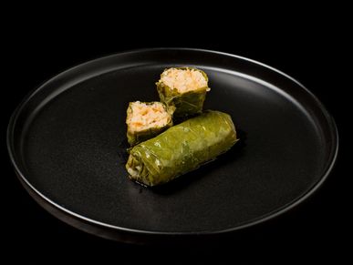 Ντολμαδάκια με γέμιση από ρύζι και φρέσκα μυρωδικά, τυλιγμένα σε τρυφερά αμπελόφυλλα. Ψημένα σε φούρνο.