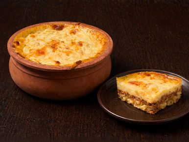 Ψημένος σε πήλινο κιούπι. Το αγαπημένο Ελληνικό παραδοσιακό έδεσμα με φρέσκες πατάτες και μελιτζάνες, ανάμεικτο κιμά και αφράτη νόστιμη μπεσαμέλ.