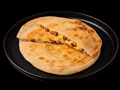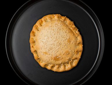 Χειροποίητη πίτα με απολαυστική γέμιση από απάκι, κίτρινα τυριά, ντομάτα, πιπεριά.